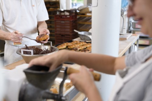 Das Handwerk bedeutet für uns eine ganz besondere Vielfalt im Tun, die es uns ermöglicht, sehr individuell nach Fähigkeiten und Möglichkeiten zu arbeiten. Zusammen mit unserem Bäckermeister sind in unserer Backstube vier bis fünf Menschen mit Assistenzsbedarf tätig, ein*e Auszubildende*r und/oder ein*e Praktikant*in.