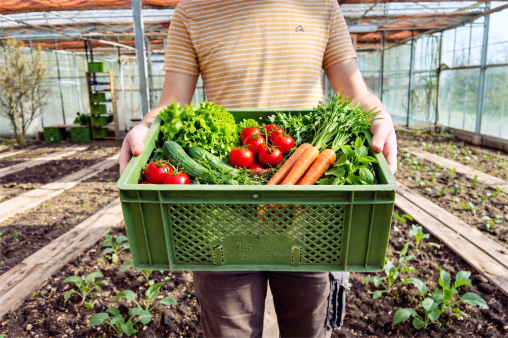 Wir bieten jede Woche frisches regionales und saisonales Gemüse. Alles wächst bei uns am Münzinghof unter Demeter Richtlinien in unseren Gewächshäusern und Gemüseacker. Jede Woche gibt es neues und wir bemühen uns, möglichst viel Abwechslung in die Kiste zu bringen. Durch unsere große Vielfalt wird es niemals langweilig in der Kiste. In großen Ausnahmen behalten wir uns vor biologisch erzeugtes Gemüse zu ergänzen, falls es zu Ernteausfällen kommen sollte. Dies ist aber bisher noch nie passiert und wir deklarieren selbstverständlich entsprechendes Gemüse.