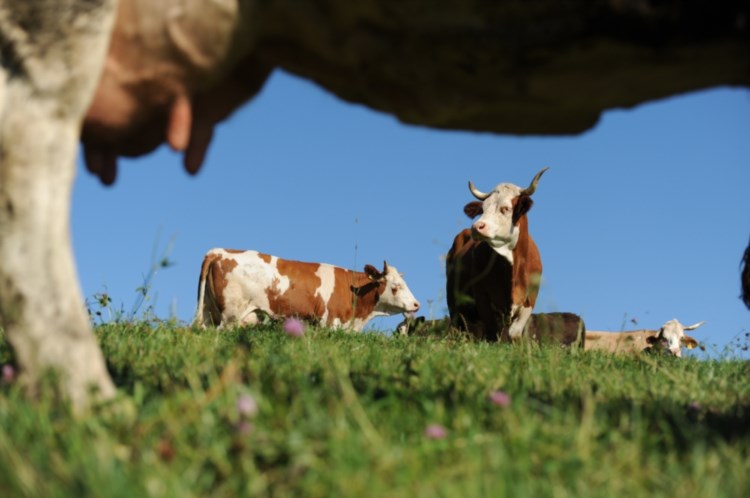 Die Milch unserer Kühe wird in der hofeigenen Käserei verarbeitet. Die dabei anfallende Molke veredeln die Mastschweine. Auf den Äckern bauen wir Brotgetreide für die Bäckerei und Futter für unsere Tiere an. Die Wiesen und Weiden geben das Heu für den Winter und das tägliche Futter für die Kühe und deren Nachzucht. Das Holz aus den Wäldern nutzen wir zum Bauen, in der Schreinerei und zur Energieerzeugung.